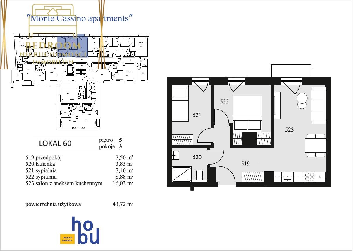 Monte Cassino Apartments - 3 pokojowy apartament na ostatnim piętrze